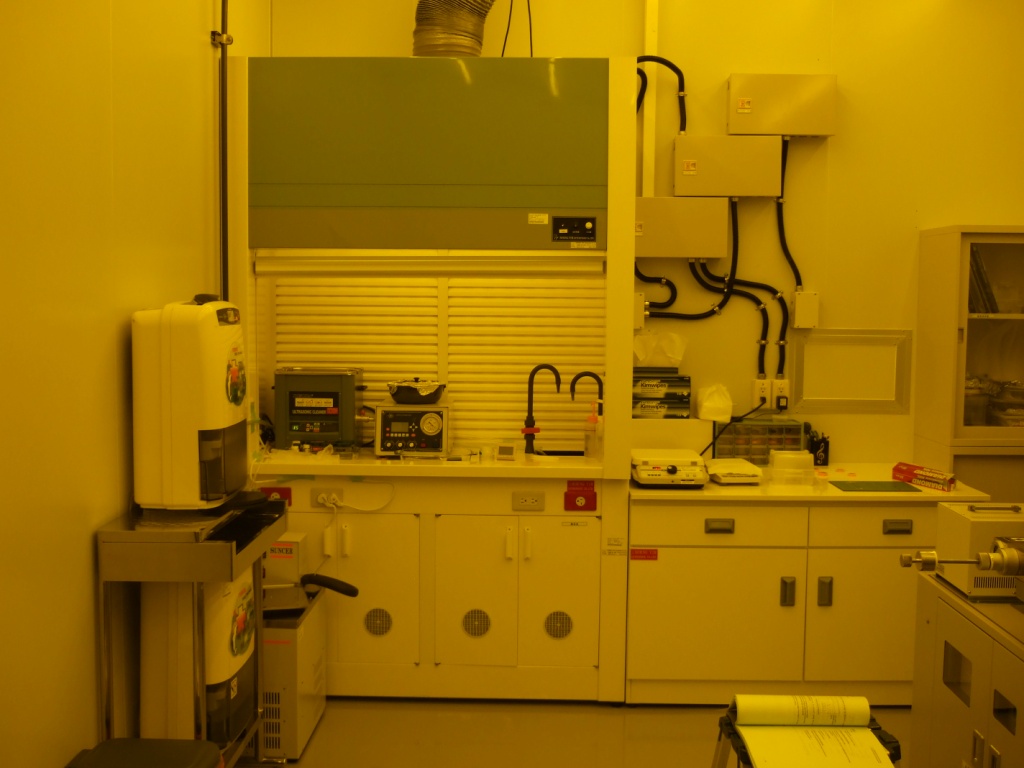 洗滌塔連接設備:排氣櫃 5 台、藥品櫃 3 台、廢液暫存櫃 5 台、玻璃器皿晾乾箱 1 台、銜接無塵室內部精密儀器抽氣支管約25支